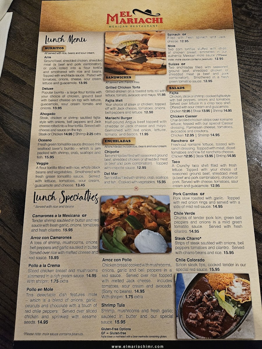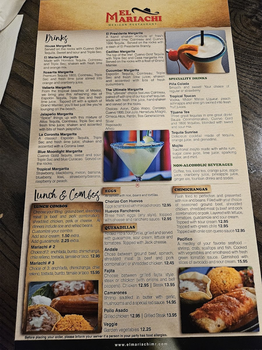 The menu shows careful attention to layered flavors and fresh ingredients, echoed in the glowing customer reviews praising the authentic tastes, friendly service, and welcoming atmosphere at El Mariachi. Each dish invites you to savor a true Mexican culinary journey with bold yet balanced notes.